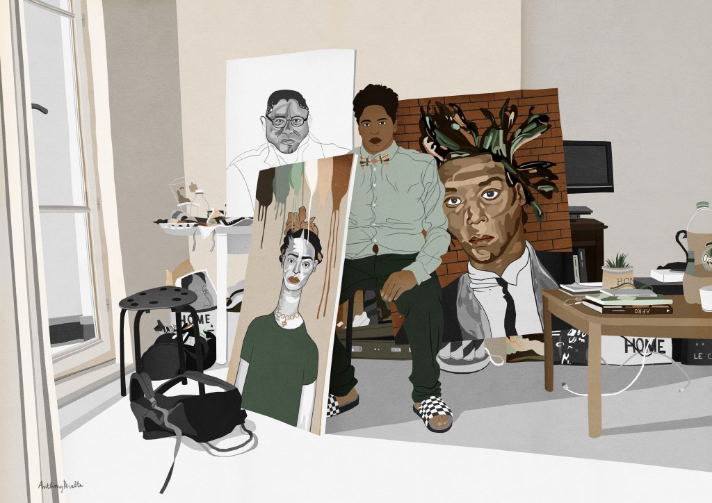 Portrait de P., artiste peintre, 2018, collage numérique de papiers grainés colorés, 59,4x42cm
